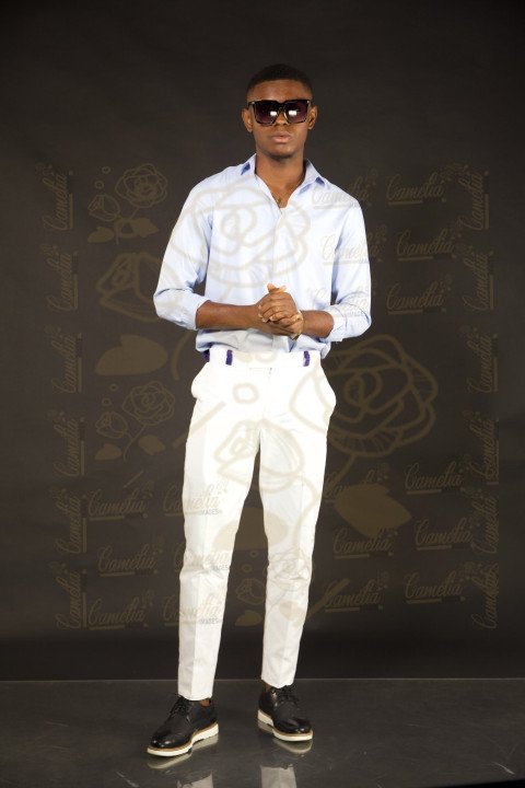 Petit garçon bébé africain mignon élégant chemise blanche pantalon bleu paire noire