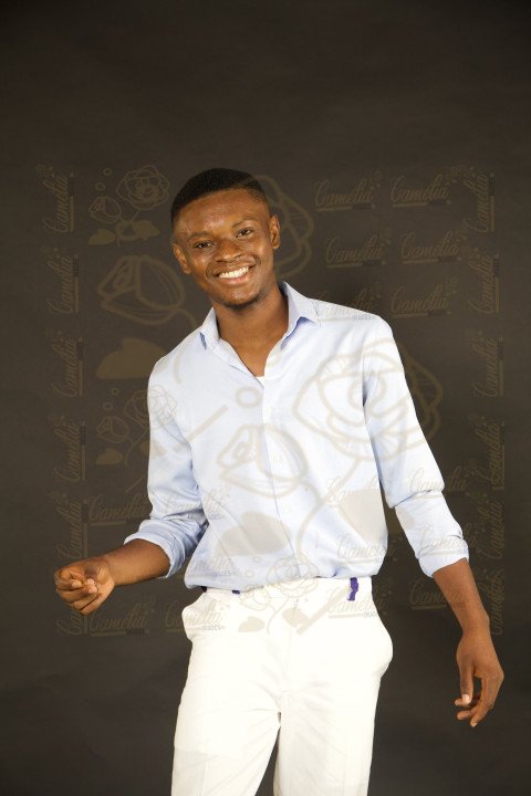 Un jeune-homme africain en noir , jubilant , style décontracté et sportif