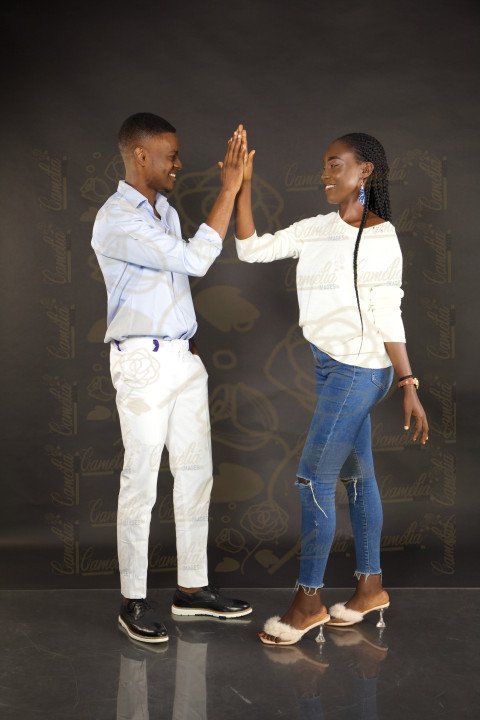 Couple Africain jeune tenue traditionnelle sawa yeux dans les yeux