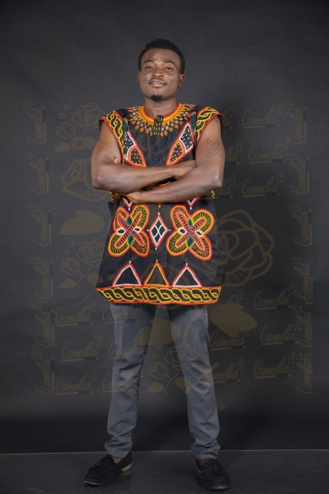 Portrait Jeune homme africain teint claire tenue Afrique pantalon noir tennis blanche
