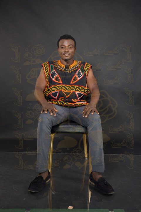 Portrait Jeune homme africain teint claire tenue Afrique pantalon noir tennis blanche
