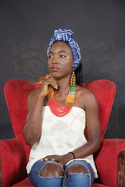 Femme Africaine Belle noir pantalon destroys colliers afritude