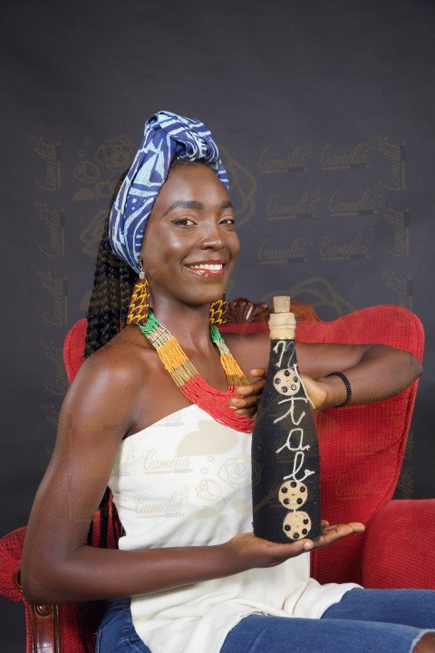 Femme africaine teint chocolat bouteille beauté naturel