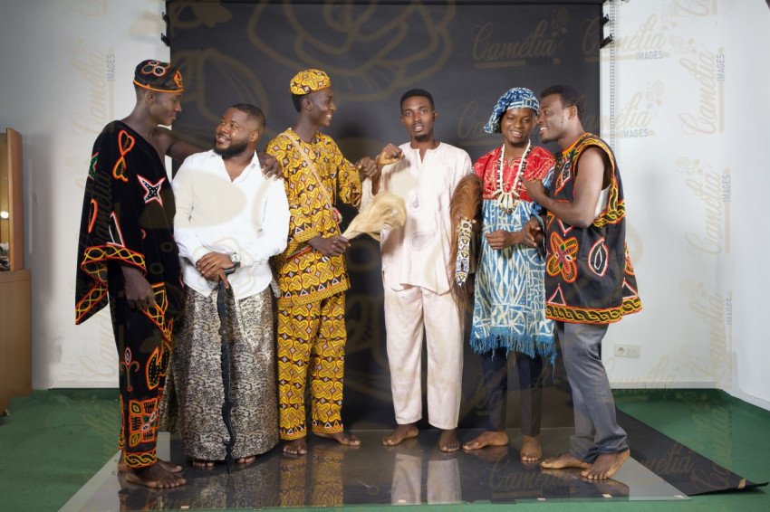 Jeune homme africain teint claire tenue Afrique pantalon noir tennis blanche