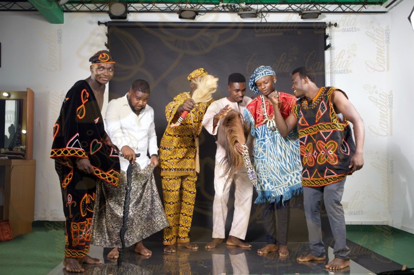Portrait Bel homme africain polo blanc culotte jaune teint claire