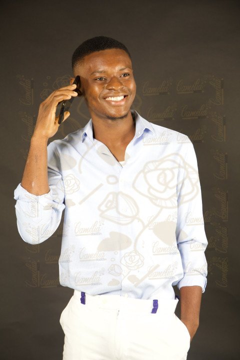 Garçon Noir Africain chemise décontracté au Téléphone