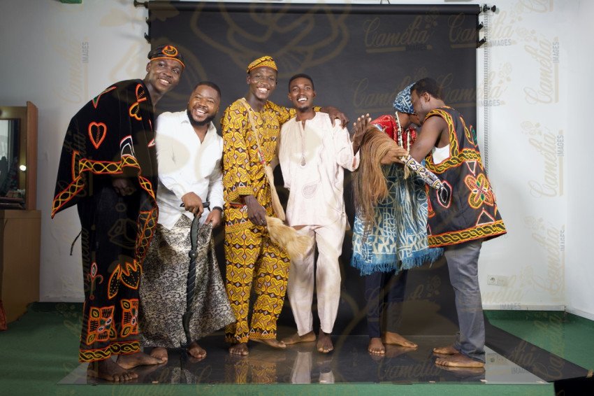 Groupes Hommes africain tenues traditionnelles intercultures