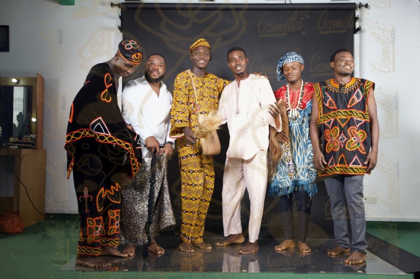 Groupes Hommes africain tenues traditionnelles intercultures