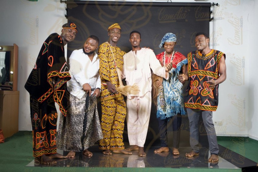 Homme noir Africain souriant Tenue traditionnel afritude bras coisé