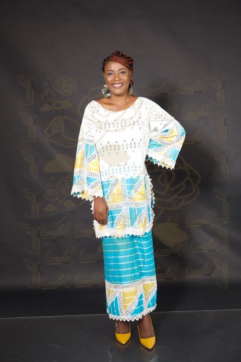 Jeune femme robe colliers boucles traditionnelle teint caramel