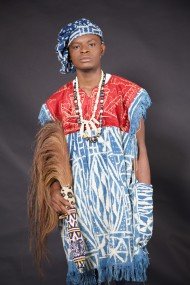 Homme Noir africain queue cheval tenue traditionnelle
