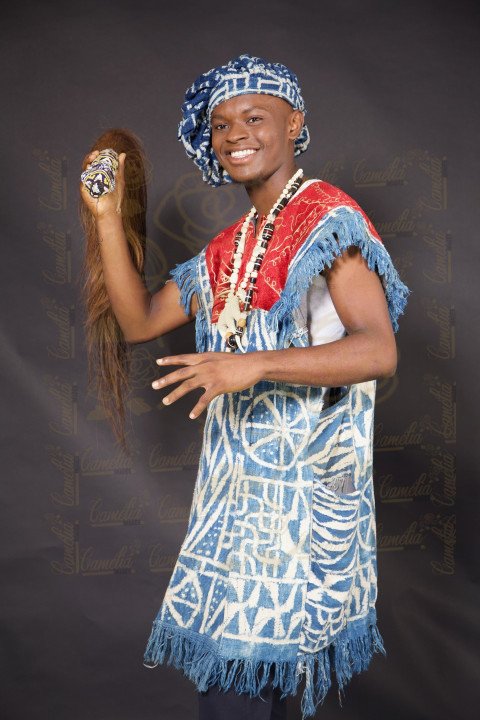 Jeune Homme africain tenue traditionnelle fauteuil rouge