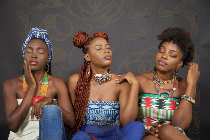 Culture Africaine femme noire coiffure afro tenue traditionnelle boucles colliers et perle