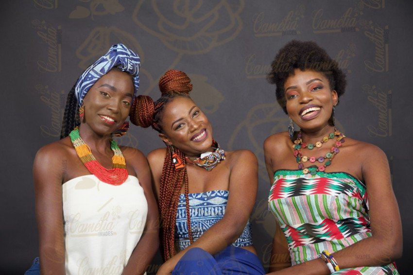 Famille Africaines belles Femmes Pagnes Afro Makeup souriantes