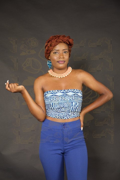 femme jeune belle rouge a levre collierafritude vetement uniforme pantalon bleu teint claire boucle afritudeSimilar Photos