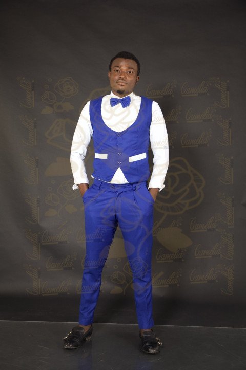 homme jeune africain elegant chemise blanche uniforme bleu jacket noeud papillon regard gai mains dans la poche chaussure noire paire noireSimilar Photos