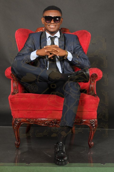 Jeune Homme africain tenue traditionnelle fauteuil rouge