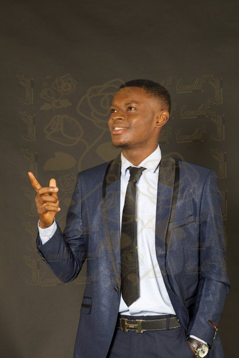 homme jeune noir teint claire sourire visage expressif yeux fixé sourire bel homme chemise bleu cravatte costume violet ceinture uniforme costume business financeSimilar Photos