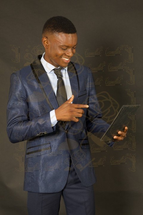 homme noir africain jeune elegant beau charisme bel homme tablette téléphone sourire dent blanche chemise bleu cravatte teint claireSimilar Photos