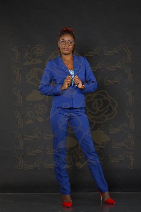 femme noir africaine teint claire costume bleu talon rouge posture mannequin coiffure rastas lunette yeux regard fixe business finance responsableSimilar Photos
