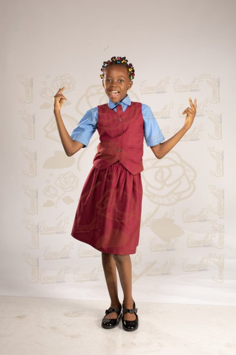 Jeune petite écolière africaine posture gestuel sourire teint claire