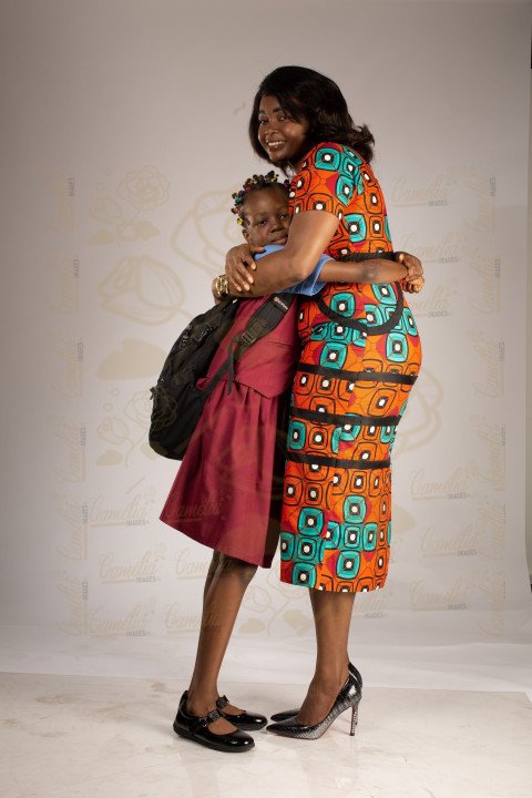 Petite écolière tenue classe chaussure noir maman africaine sourire
