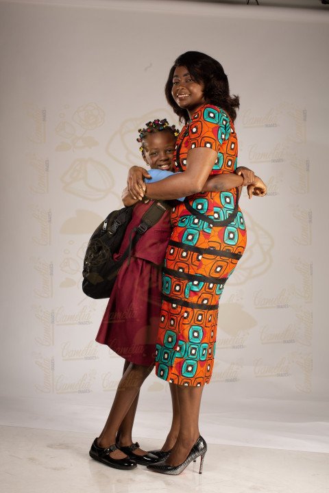 Maman africaine robe fleurs fille petite ecolière africaine tenue classe posture matoba
