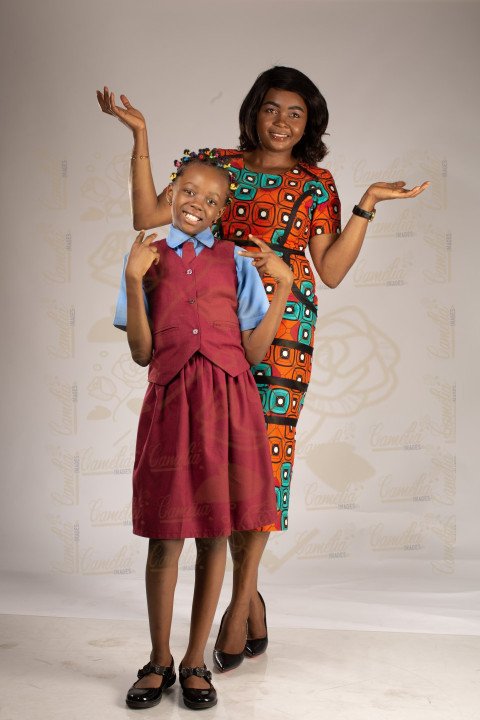 Petite ecolière tenue classe geste poigné confiance maman africaine