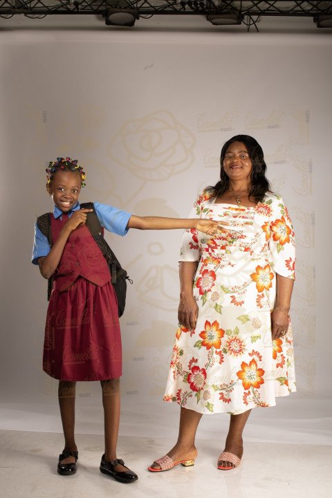 Petite écolière tenue classe chaussure noir maman africaine sourire