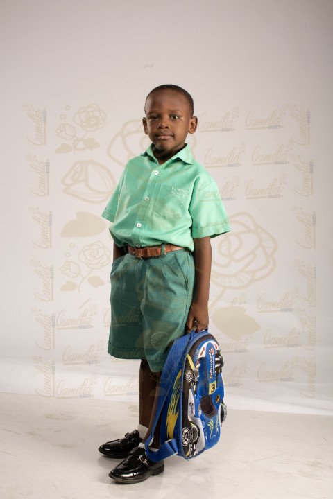 Petite ecolière tenue classe geste poigné confiance maman africaine