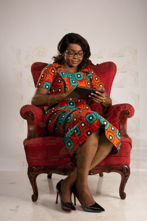 Femme uniforme pagne communication tablette talon noir fauteuil reine couleur bordeau