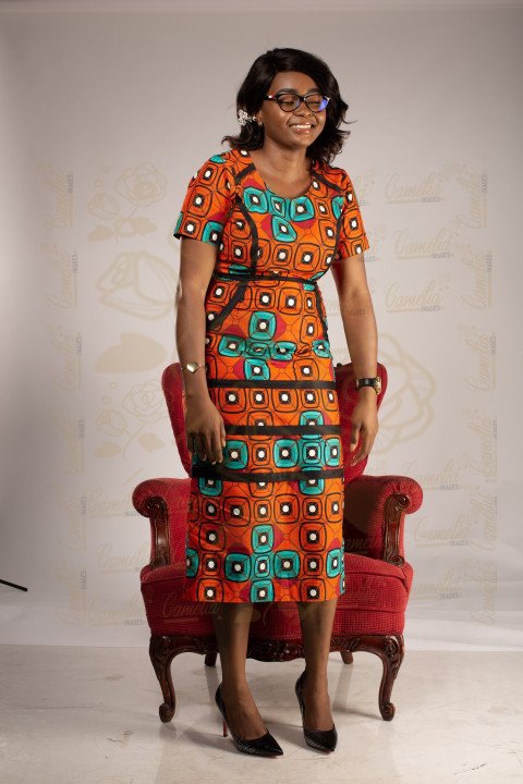 jeune petite africaine tenue classe grand sourire gestuel salutation
