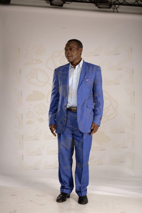 Papa africain ensemble veste bleu ciel paire noire ceinture