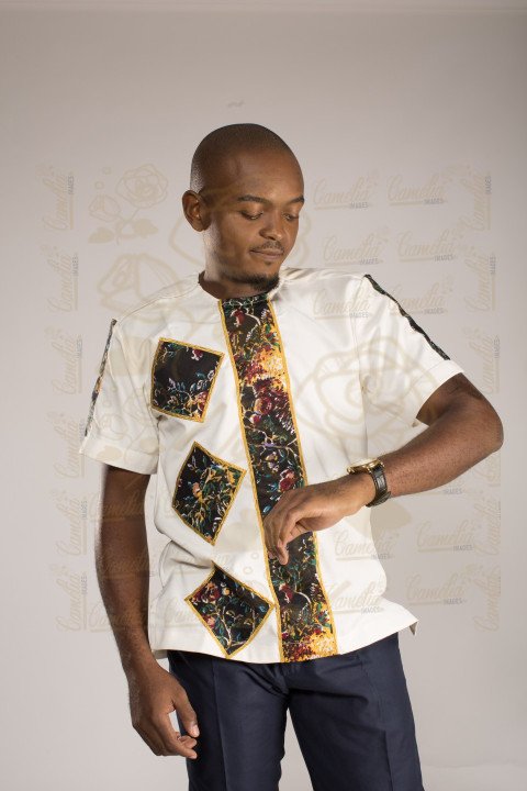 Portrait Jeune homme africain teint claire tenue Afrique pantalon noir tennis blanche