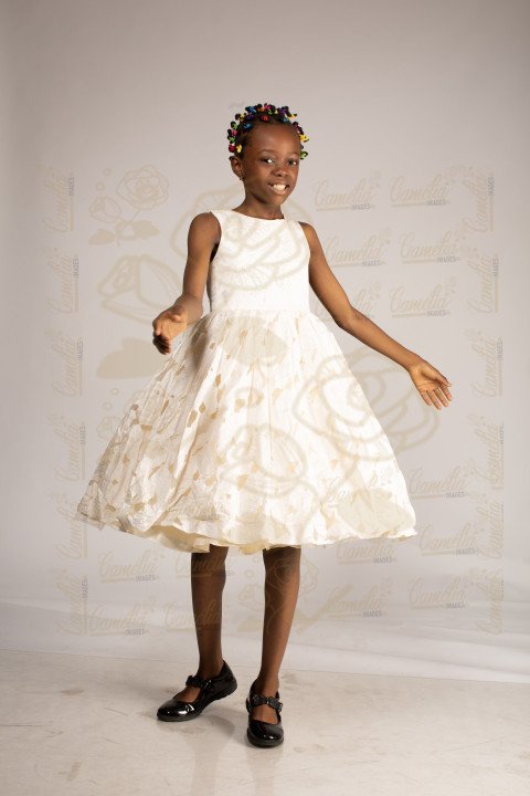 Jeune petite fille africaine belle expression visage robe blanche fleurs gestuel danse