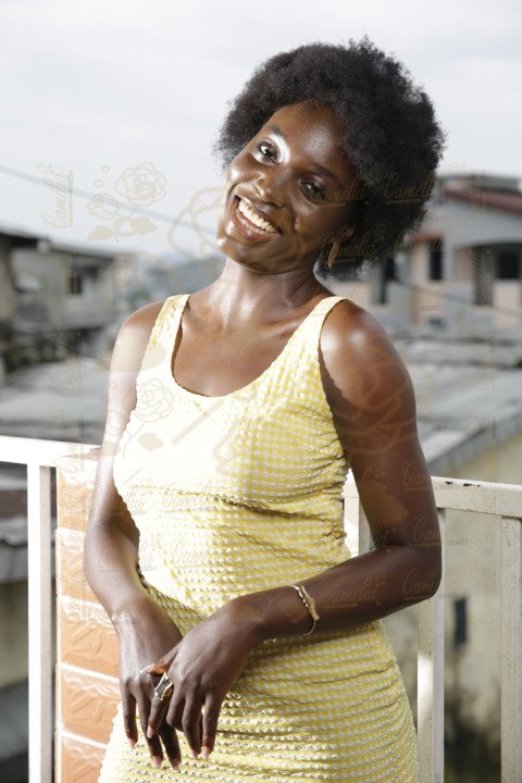 Jeune femme Africaine cheveux Afro teint chocolat grand sourire