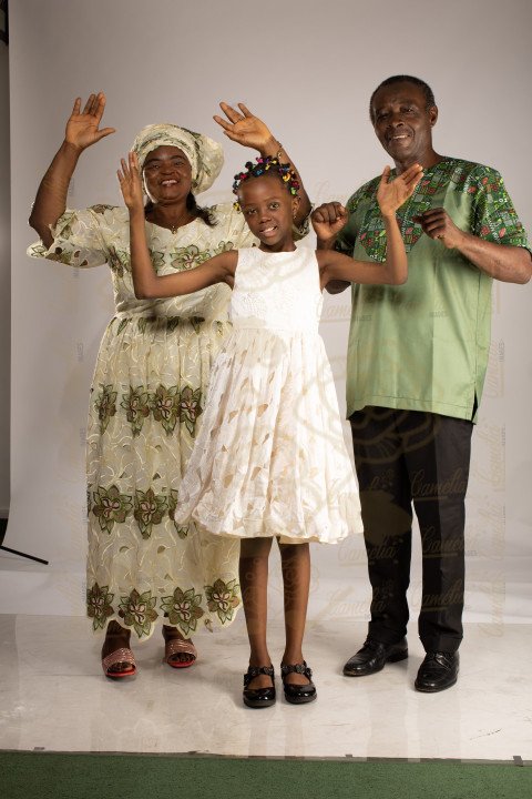 Famille Papa Maman Petite fille sourire dent blanche robe fleurs foulard