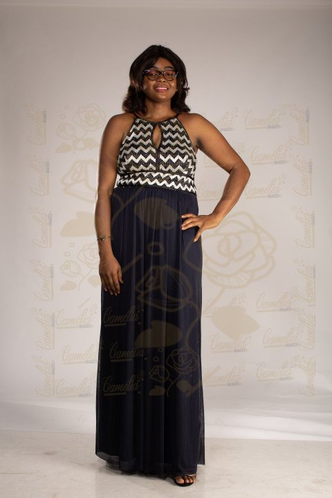 Top model africain teint chocolat robe fleurit coiffure rasta talon transparente