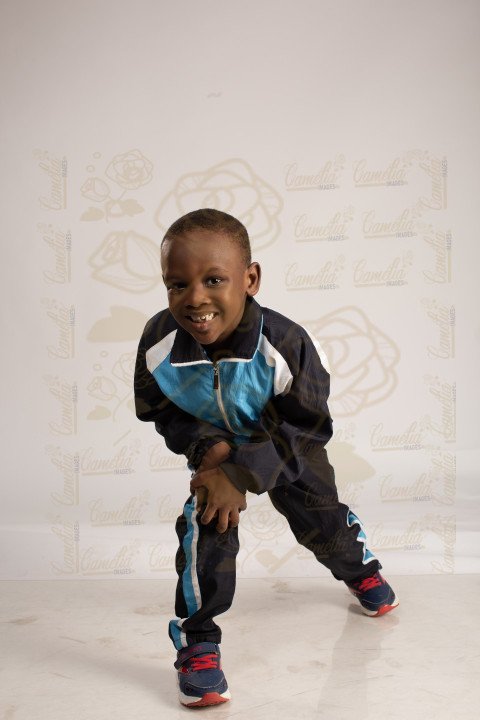 Jeune petit garçon africain tenue sport expression visage grimasse gymnastique
