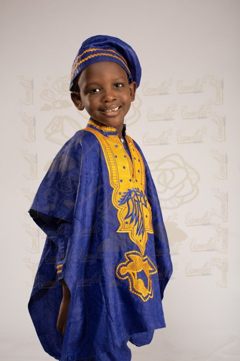 Jeune petit garçon uniforme Gand bleu tenue traditionnelle paire noire