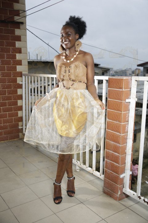 Jeune petite fille africaine foulard jaune cabas ceinture talon rose jolie sourire
