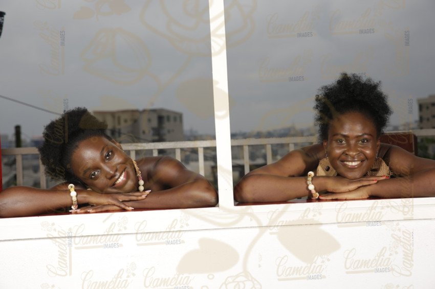 Jeune femme Africaine boucle oreille teint claire tricot décolté chaine bijoux