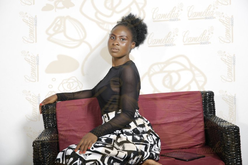 Femme regard figer teint chocolat cheveux afro