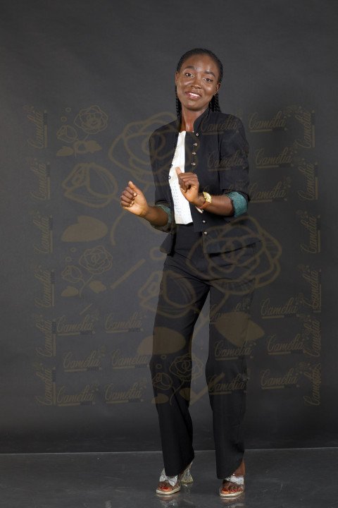 Femme affaire africaine veste noire posture mannequin gestuel expression visage