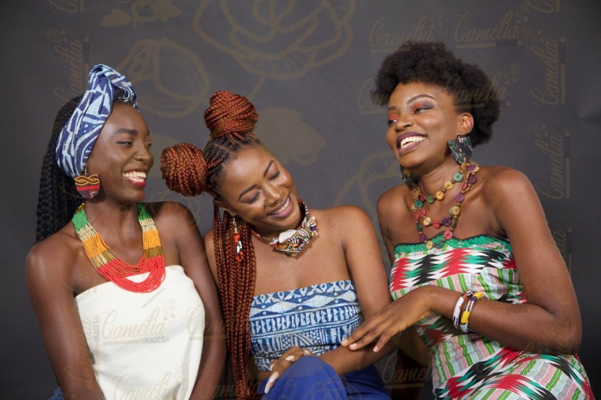 Femme africaine expresion visage gestuel mains talon jaune