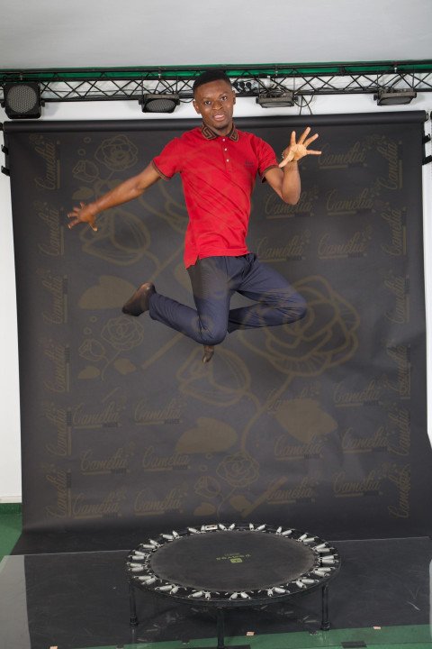 Un jeune-homme africain en noir , faisant des acrobaties , style décontracté et sportif