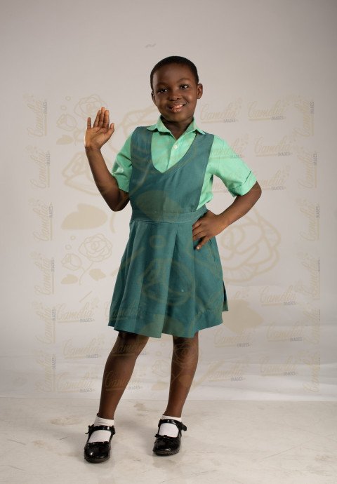 Jeune petite fille africaine belle grand sourire tenue classe chaussures noires coiffure matoba
