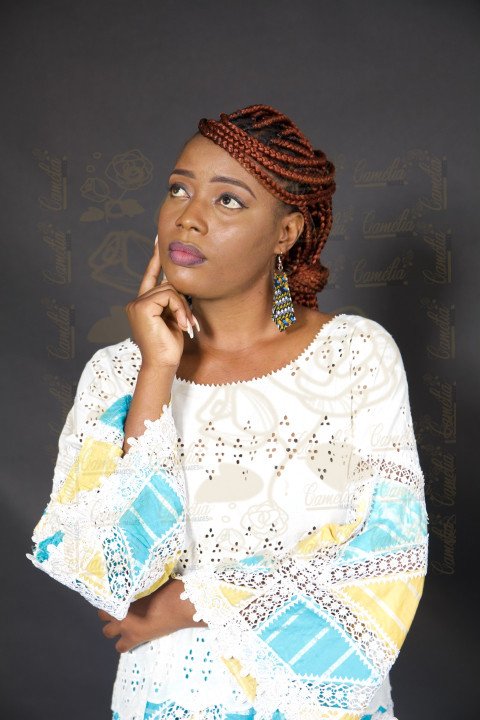 Jeune femme affaire Africaine souriante elegante milieux interieur