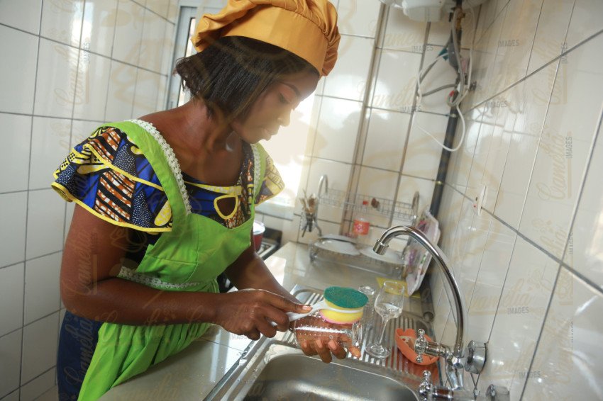 Une belle jeune femme Afro, souriante, en ténue verte ,avec une écharpe de joyeux anniversaire rouge, et un diadème sur sa tête