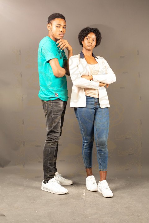 Un jeune couple africain , debout prêt l'un de l'autre avec un air sérieux, style décontracté